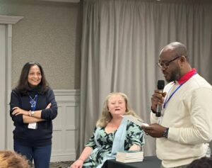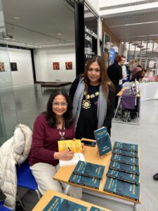 Nadia Kabir Barb discussing The Importance of Writing Well-Defined Characters and Authentic Dialogue at the Book Fair, Swiss Cottage Library organised by The Book Bistro And attended by the Mayor of Camden Samata Khatoon.